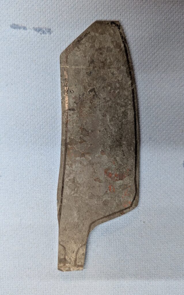 Nach nochmaligen Aufmalen und intensivem Schleifen liegt dann endlich der Messerrohling in seiner entgültigen Form vor uns.