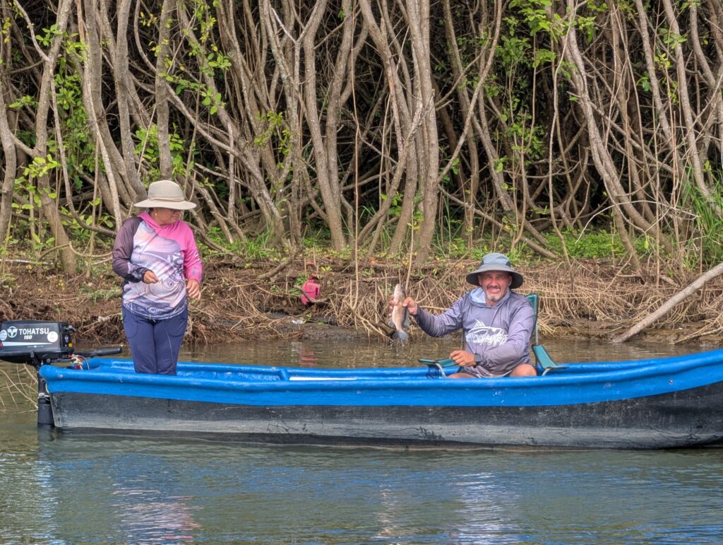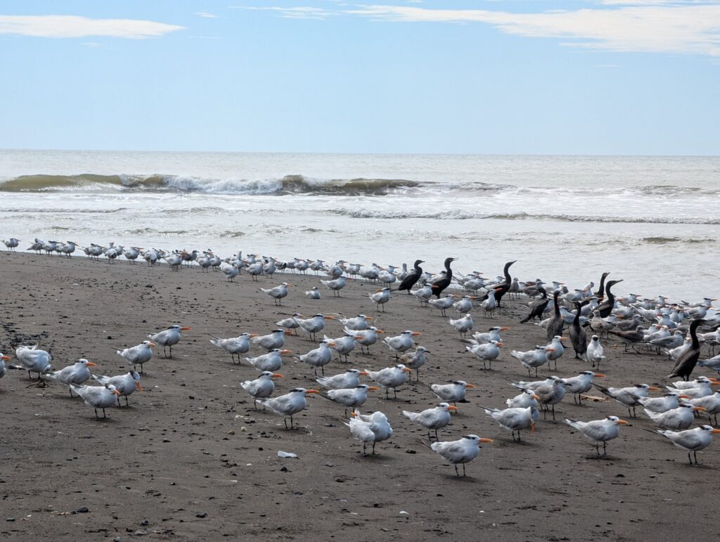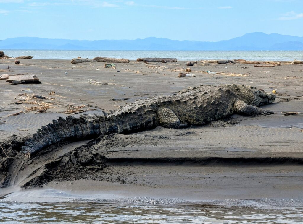 Gegen Mittag kommen wir in der Nähe des Ortes Tarcoles an, dort wo der Fluss Tarcoles in den Pazifik mündet. Dieser Brackwasserbereich ist bekannt für seine große Menge an Krokodilen und Vielfalt an Vögeln.