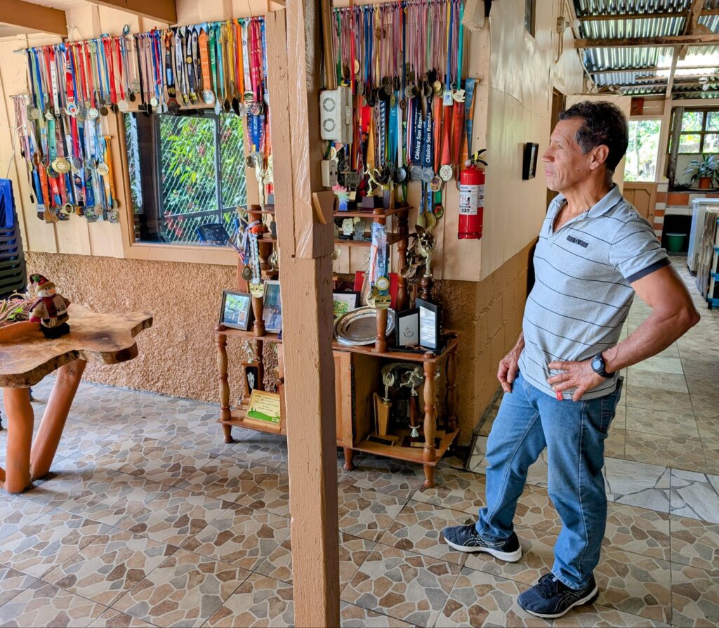 Im Bild sieht man im Hintergrund ihre Medaillen und Pokale. Die Bestzeit des mittlerweile 67jährigen Mannes lag wohl bei zweieinhalb Stunden, wenn ich das richtig verstanden habe.