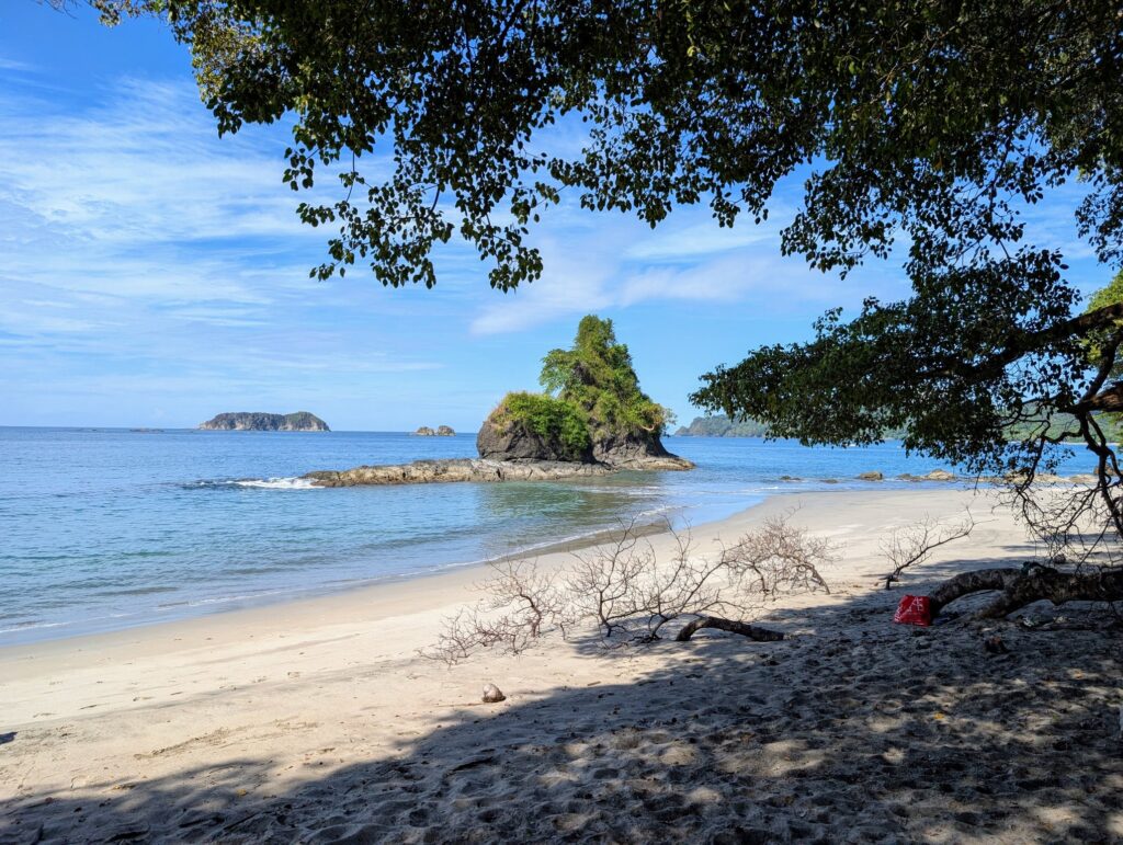 Heute morgen geht es relativ zeitig (8 Uhr) los in den Nationalpark Manuel Antonio. Dieser ist mit 6,8 Quadratkilometern zwar einer der kleinsten Costa Ricas, aber bei Einheimischen und Touristen sehr beliebt. Er schützt ein 1624 Hektar großes Regenwaldgebiet und hat mehrere schöne Strände.