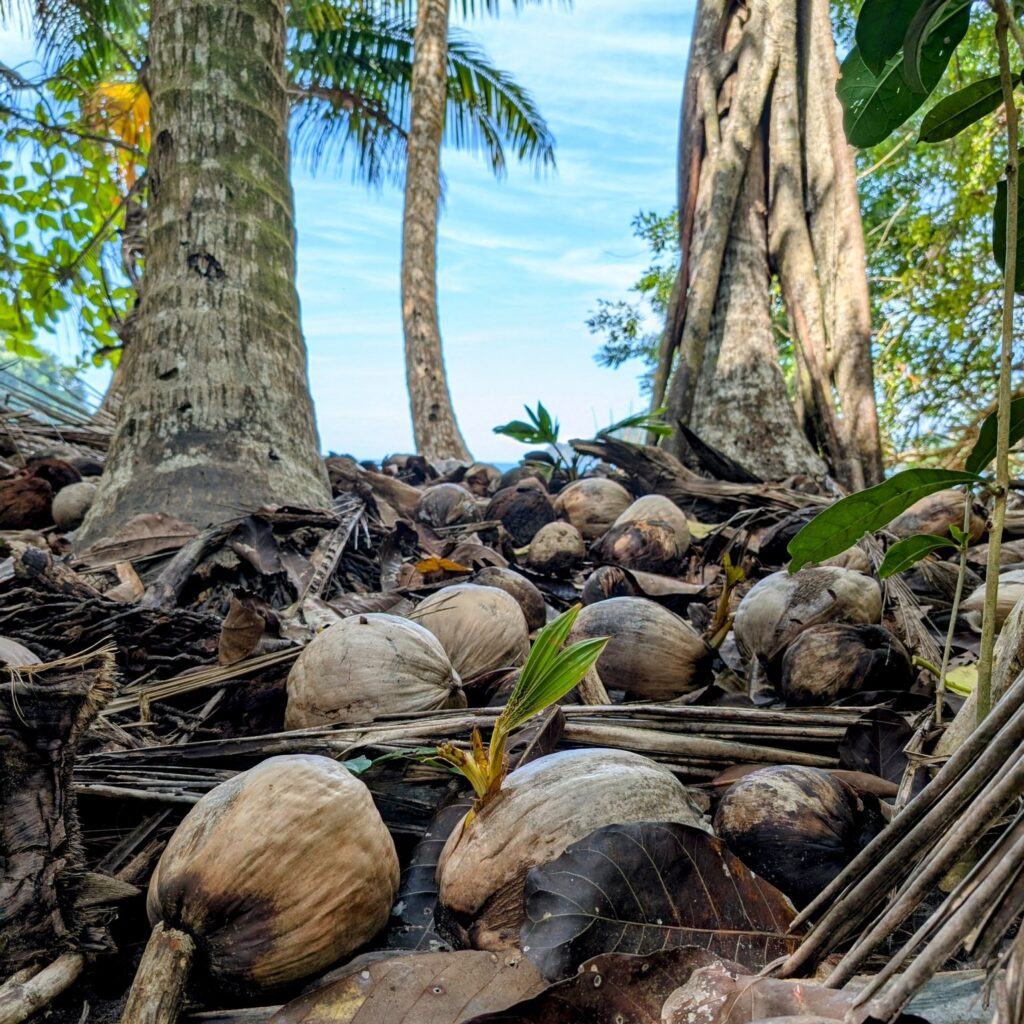 Am Strand sehen wir Leguane, Einsiedlerkrebse und Kokospalmen in Hülle und Fülle.