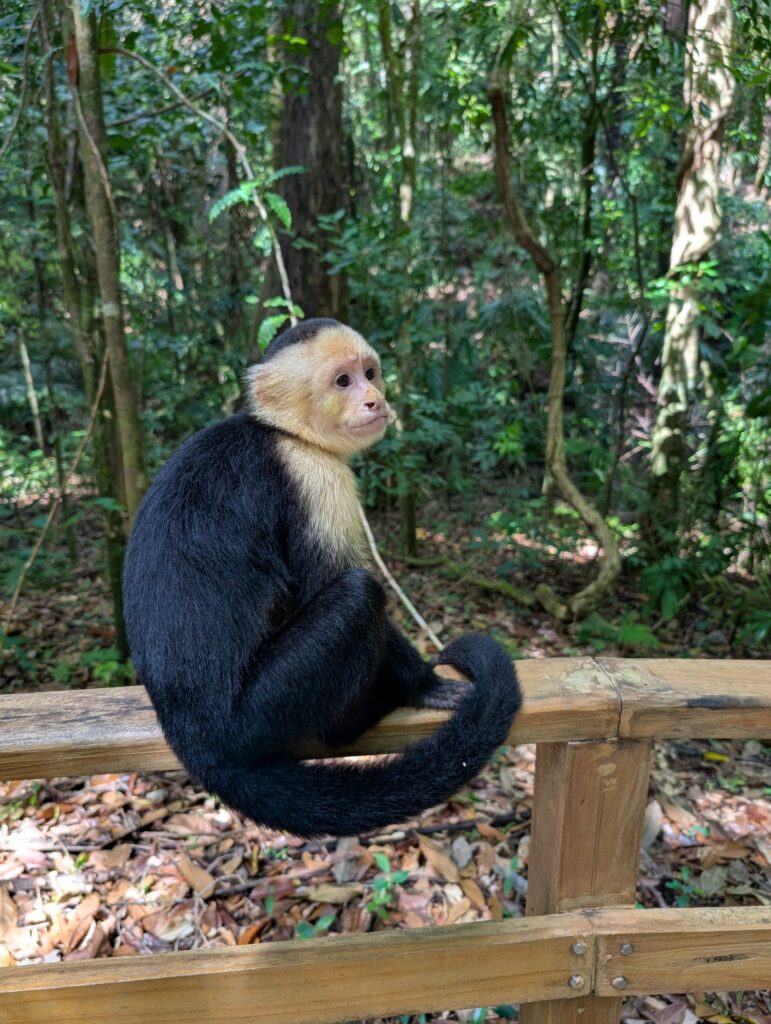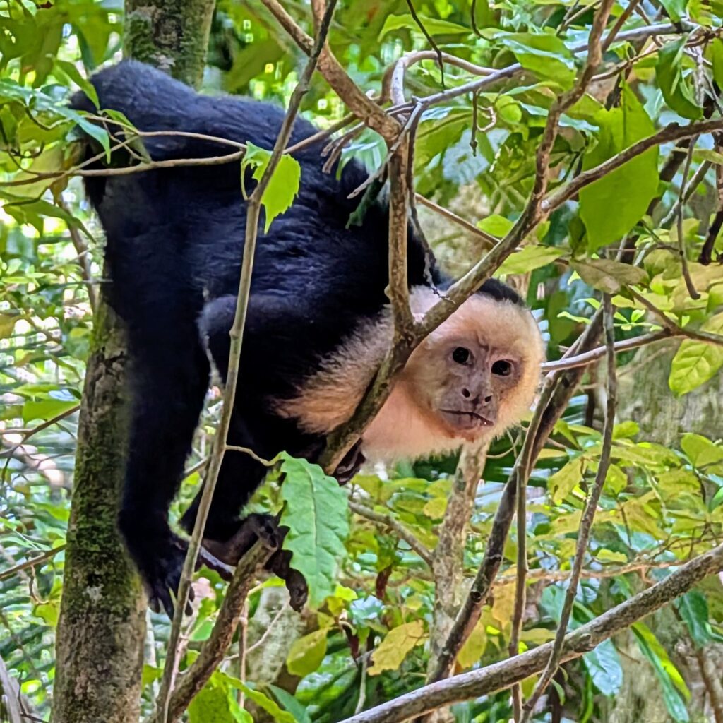 Wir umrunden die Halbinsel auf dem vorgegebenen Weg und werden mit tollen Ausblicken und einer unvergesslichen Begegnung mit einer großen Gruppe Kapuzineräffchen belohnt.