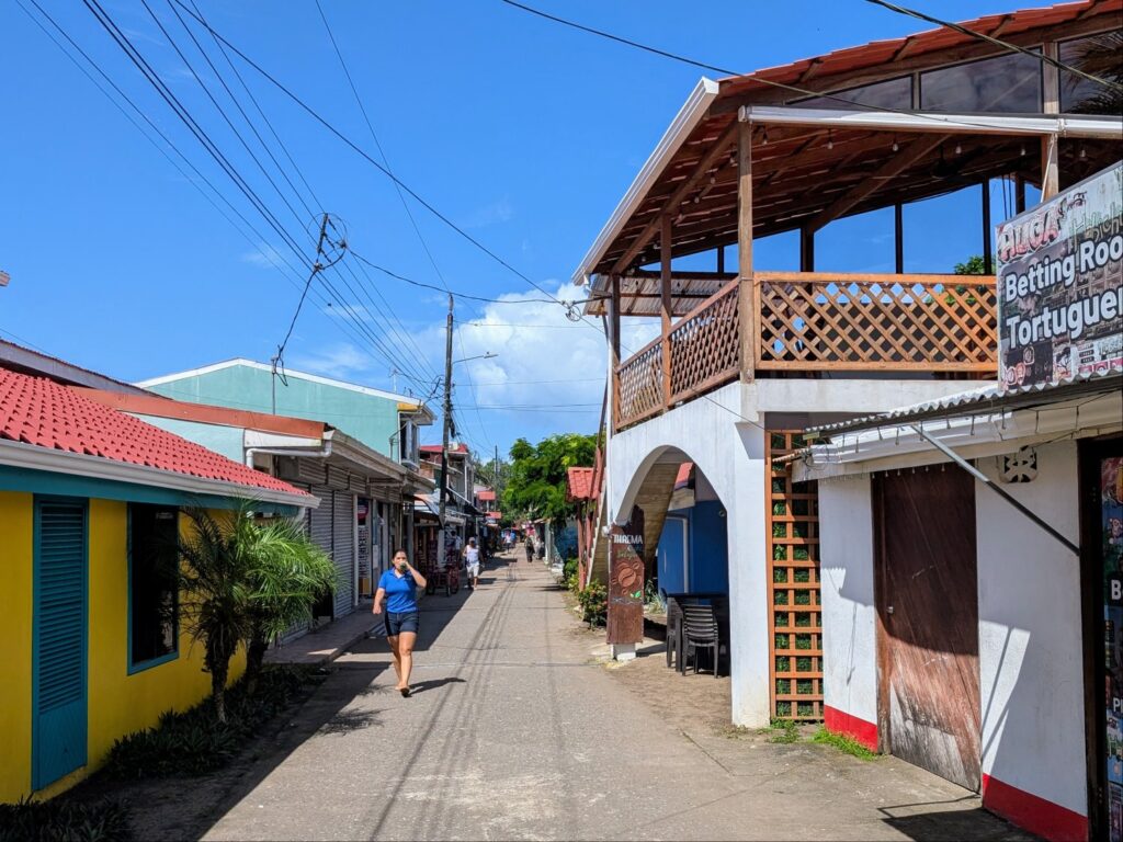 Dann laufen wir nah am Strand Richtung Dorf Tortuguero .